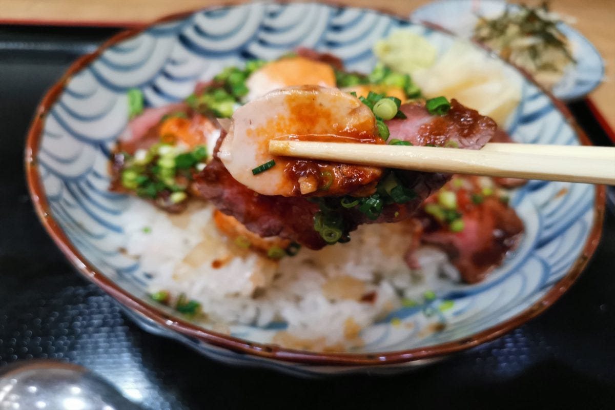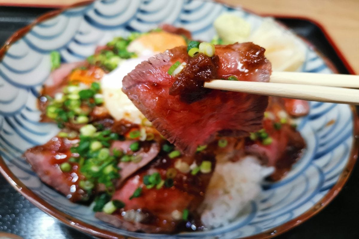 ちなみに、1杯の丼に使われている和牛の量は80グラム弱(調理後)とかなり多く、仕入れも福島県南相馬市の人気肉店「今野畜産」から仕入れた最上級の福島牛ウチモモを使用しているので、肉単体の品質も最高のもの。