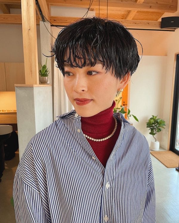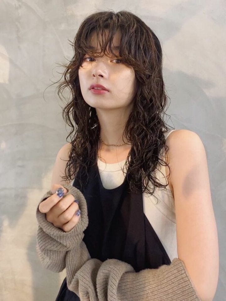 パーマをかけると短めの毛束に動きが出ておしゃれな髪型になりますよ。動きが出やすいミディアムは、黒髪などのダークカラーにもよく似合う髪型です。