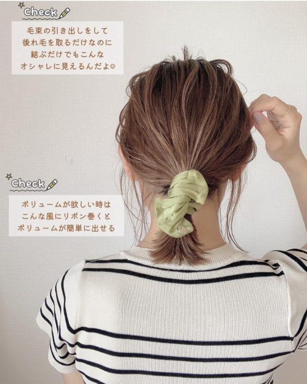 でも、ただまとめただけではおしゃれに見えないので、こちらを参考に動きのある髪型に仕上げてみましょう。