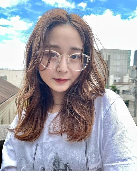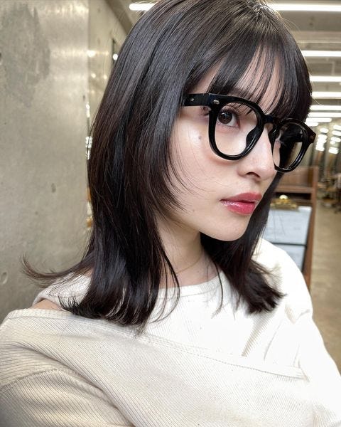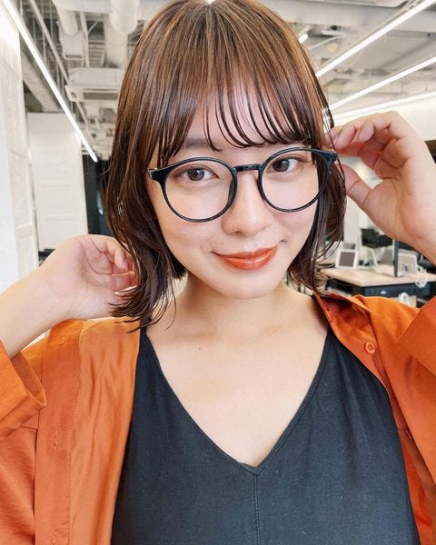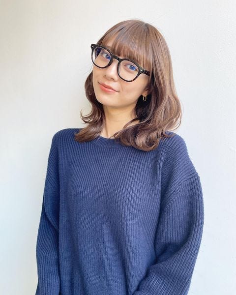 黒髪でもおしゃれですが、黒ぶちメガネをかけたときに重たく見えるので、少し明るめのヘアカラーで垢抜けましょう。