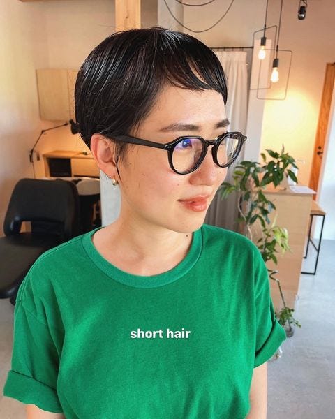 ハンサムショートやマッシュショートなど、ショートの髪型にもいろいろありますが、タイトにまとめたコンパクトショートにもメガネがよく似合います。