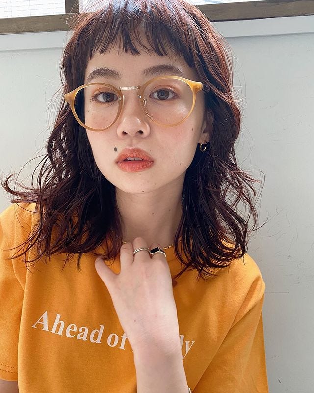 オン眉×パーマの髪型はメガネに似合うので、雰囲気をガラッと変えたい方は思い切って前髪を短めにカットするのもおすすめです。