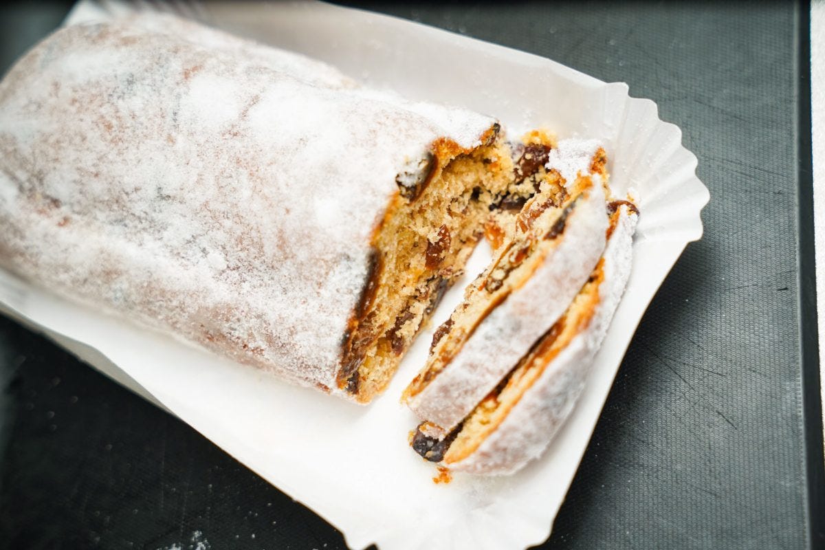 クリスマスの時期によく耳にする「シュトレン」とはドイツの菓子パンのことで、生地に練り込まれたフルーツとナッツの味わいや洋酒の風味を楽しめるのが特徴。外側に砂糖をふんだんにまぶしているのもポイントだ。
