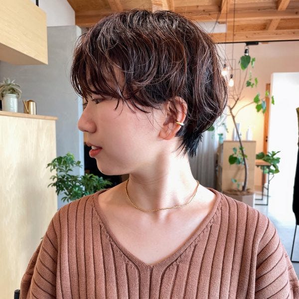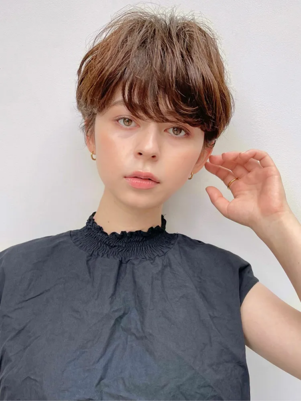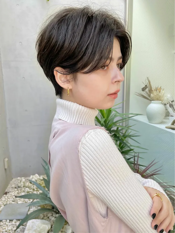 カットで自然な丸みが出るマッシュショートに仕上げているので、簡単スタイリングでおしゃれなシルエットに仕上がります。