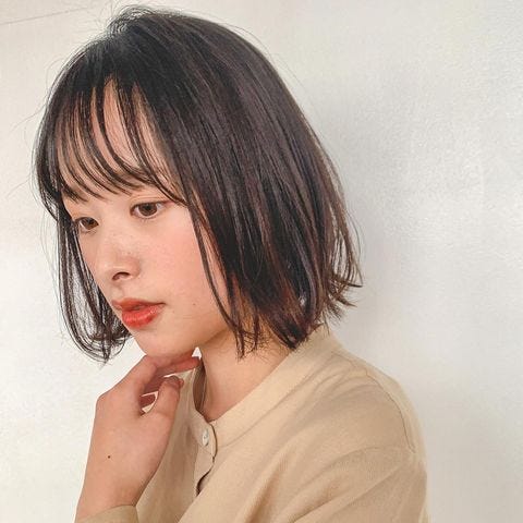 やや前下がり気味にカットされており、気になる輪郭もしっかりカバーするので小顔効果もばっちり。