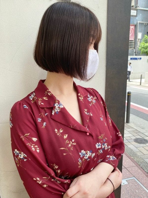 また前下がりボブは気になる顔周りもカバーしてくれるので、短い髪型に抵抗がある方でも挑戦しやすいです。