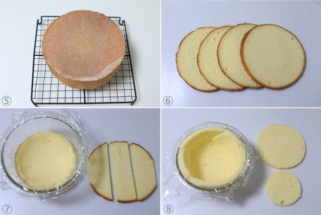 ⑥ スポンジ生地を入れる。