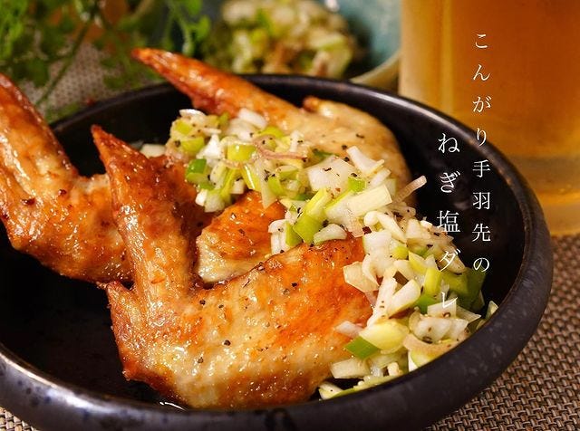 鮭の風味と相性抜群な鶏手羽先のネギ塩ダレ