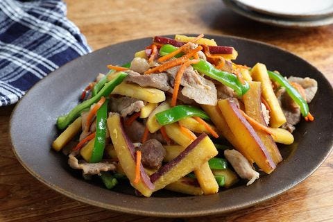 さつま芋が鮭と合う豚肉のゆず胡椒きんぴら