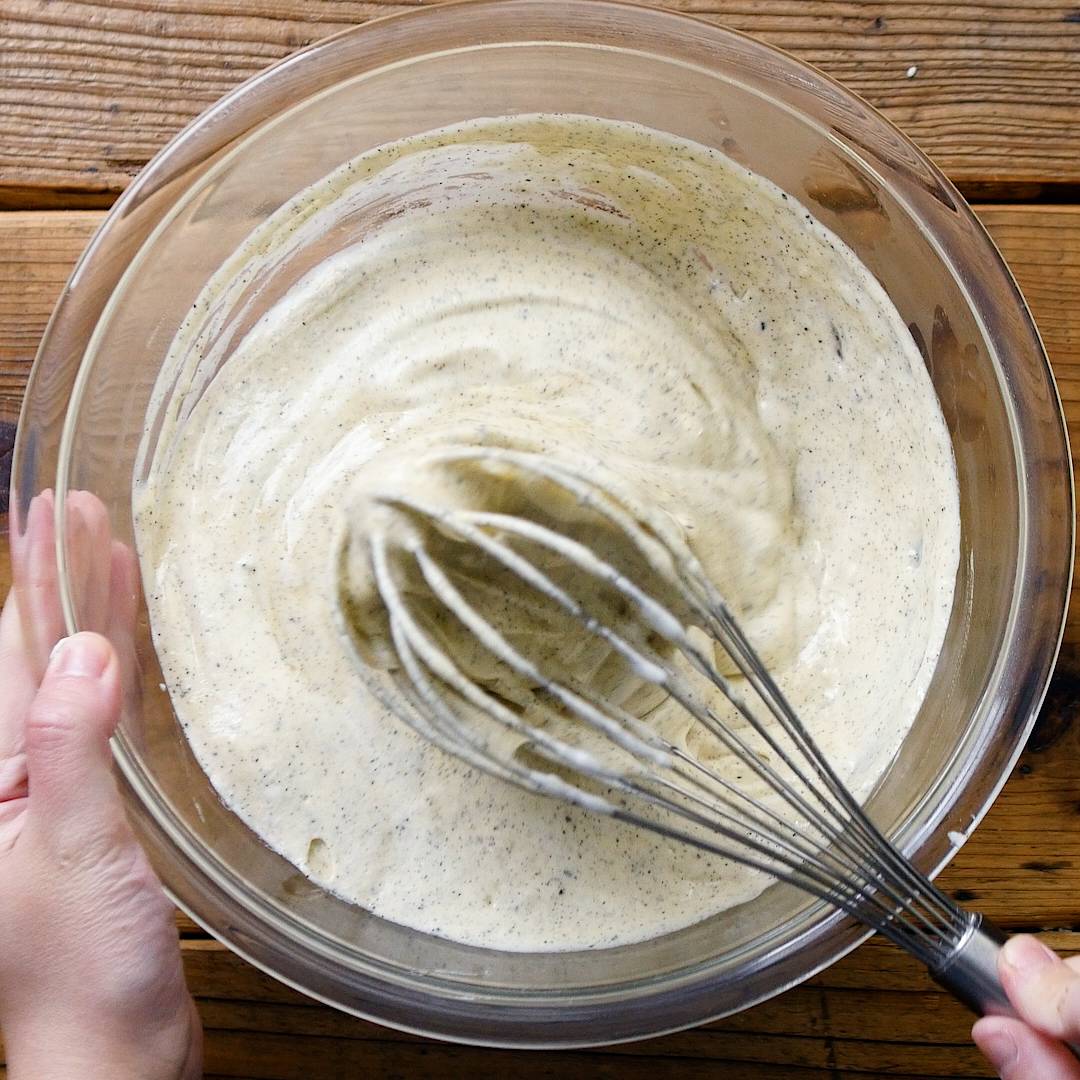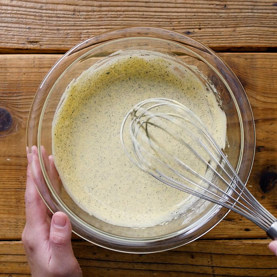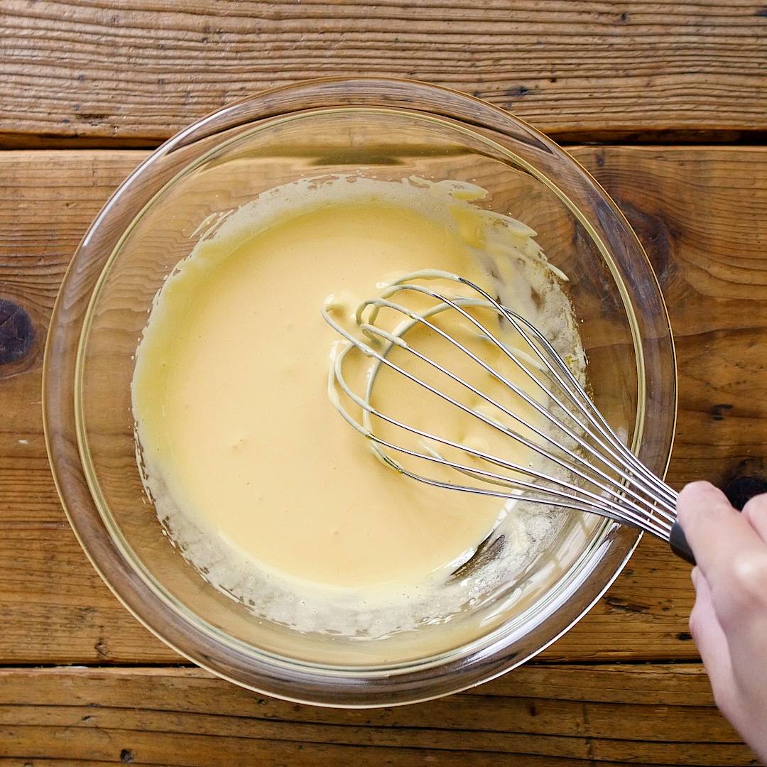 残りの半分のメレンゲを加えてさらにホイッパーで混ぜ合わせます。