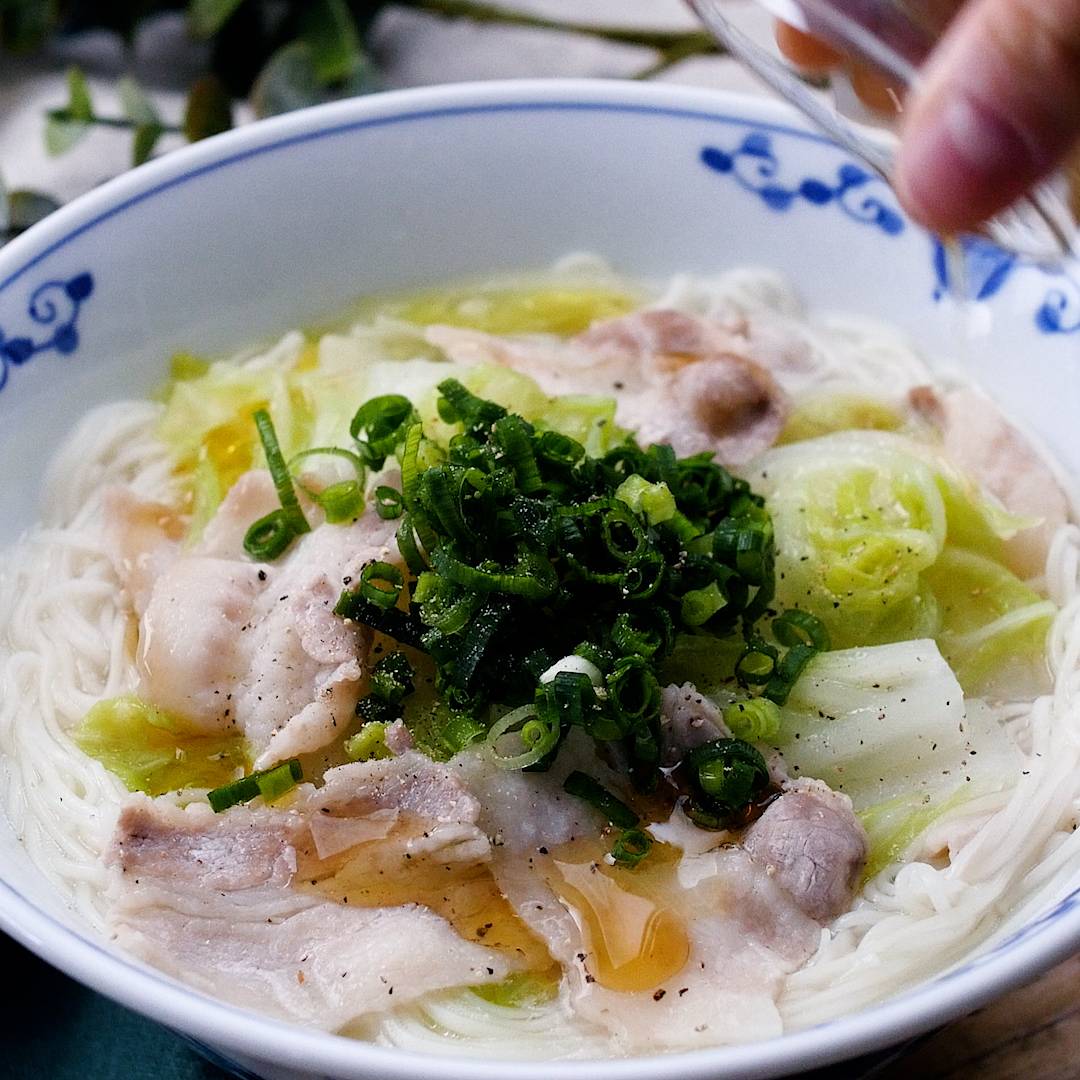 【作り方】豚バラ肉と白菜のにゅうめん