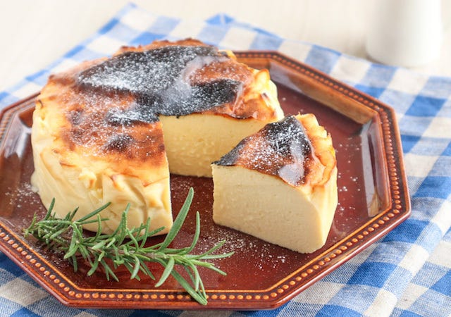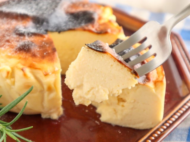 さつまいもの優しい甘さが広がるバスクチーズケーキ風のケーキです♡焼き立てはじゅわっと柔らか、冷やすとしっとりクリーミーな美味しさを楽しめます。焼きあがりは柔らかく見えますが、冷やすと落ち着くので焼き過ぎないようにしてください。