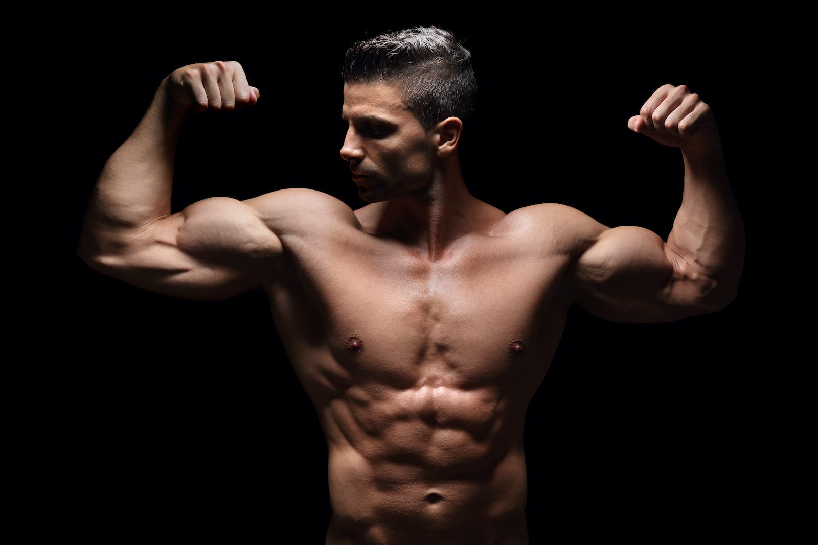 見事な筋肉の山をつくる「上腕二頭筋」、そのすそ野を飾る二の腕の筋肉「上腕三頭筋」、厚くたくましい「大胸筋」。
