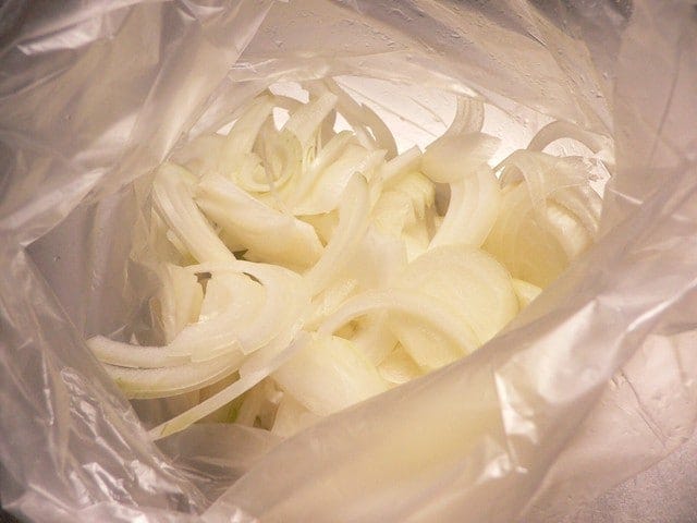 13:スライスたまねぎをポリ袋に入れて冷凍する