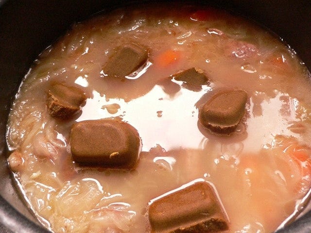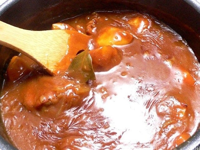水の分量は箱裏の材料表を見て加減してください。ルーを入れてから煮込む際、とても焦げつきやすいので気をつけましょう。何かをちょい足しする場合は、味見しながら少しずつ加えていくのが良いです。
