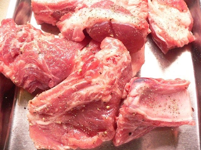スペアリブを使う場合は、適度な大きさに切られているものを買い求めるか、肉屋さんで切ってもらってください。