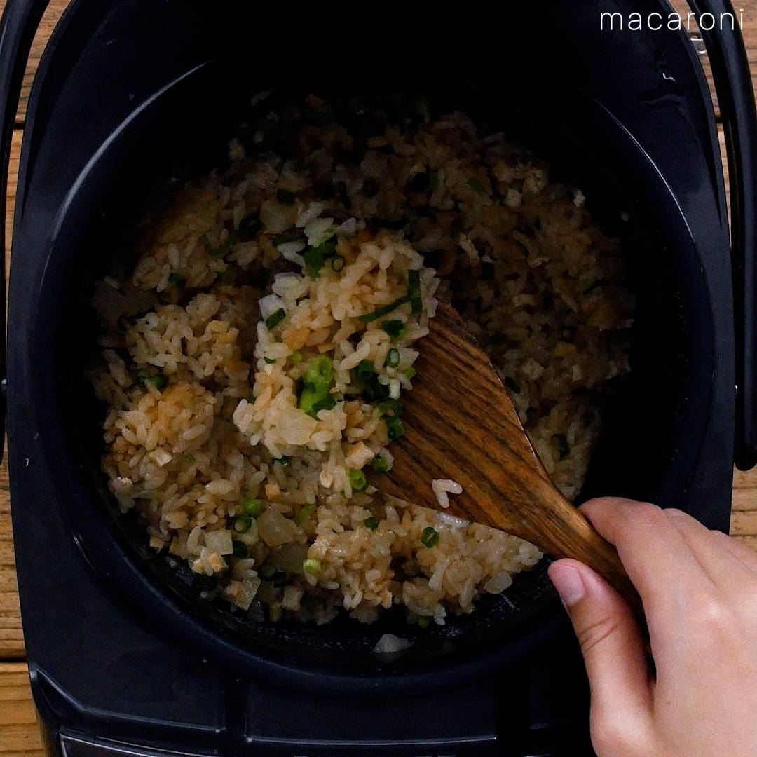 小口ねぎを加え、底から混ぜ合わせて完成です。