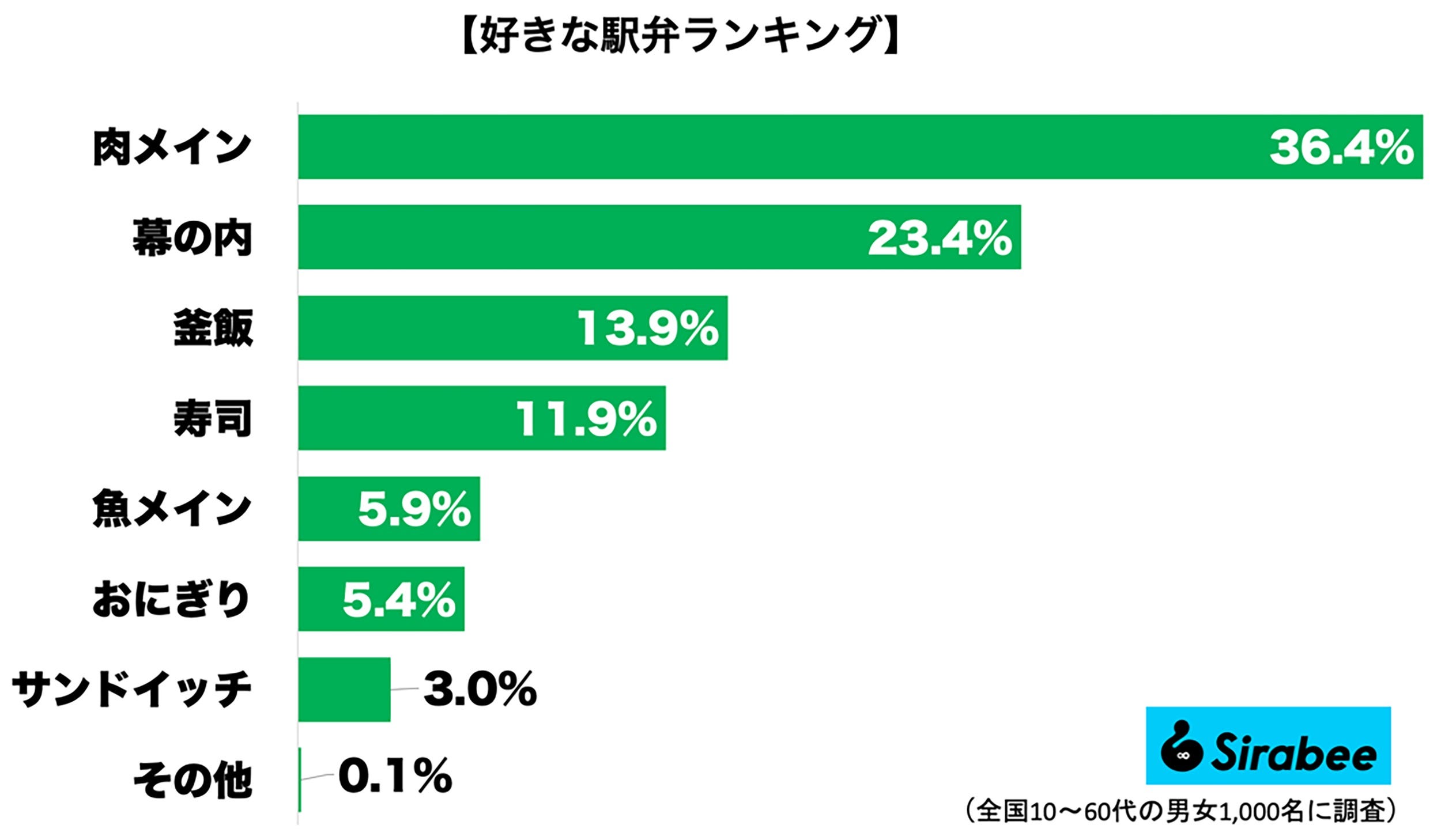 もっとも支持を得たのは、肉メインの駅弁(36.4%)で3人に1人が回答した。