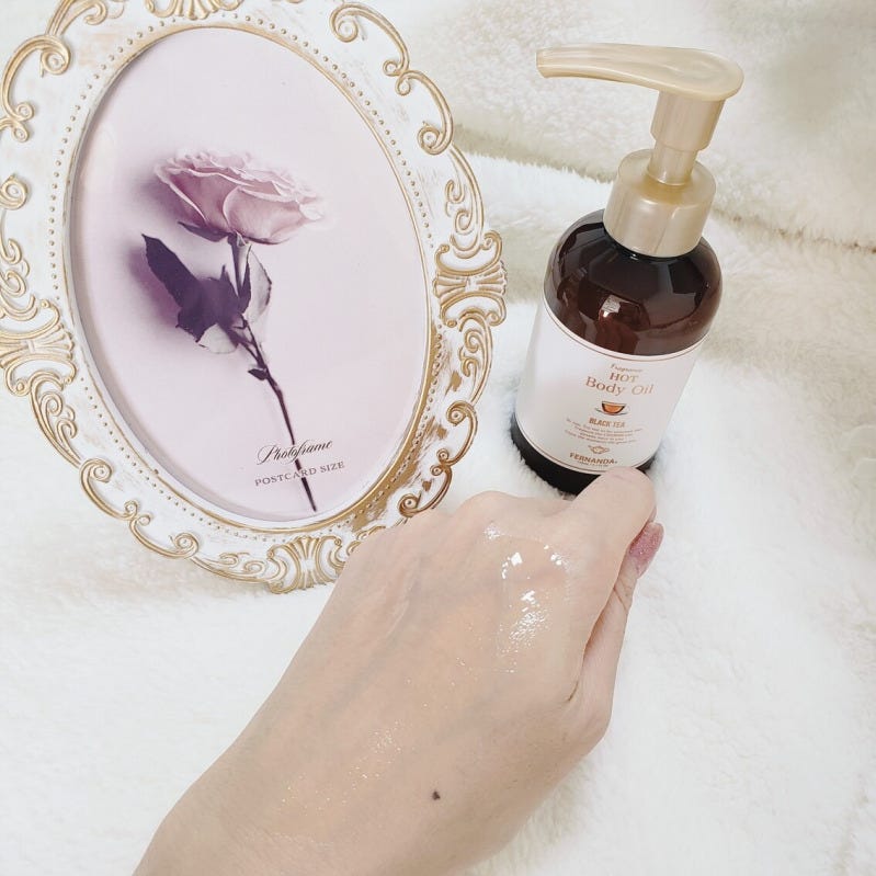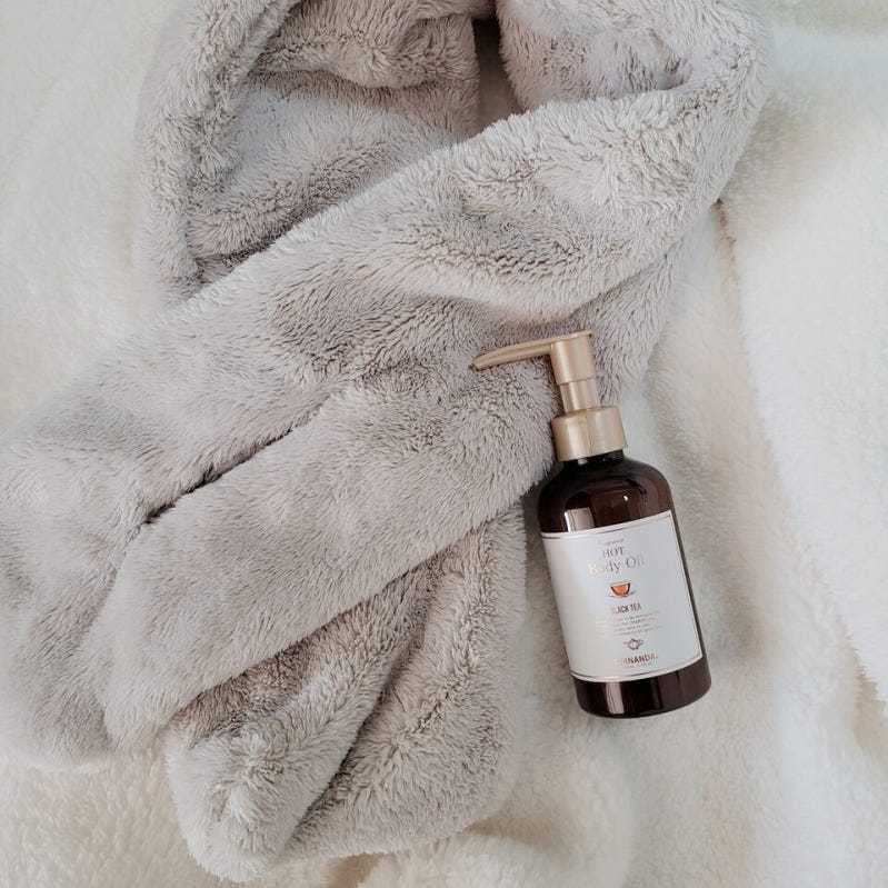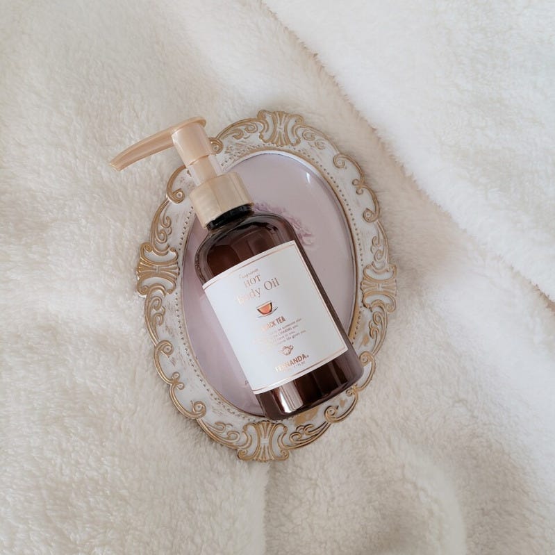 香りは、ほのかな甘みを感じられるブラックティーがベース。爽やかでフローラルなベルガモットとみずみずしく新鮮なリーフィーグリーンのマリアージュを楽しめる、優雅で洗練された香りです。FERNANDAのアイテムは何よりも香りが魅力的。ほのかな香りがお肌だけでなく部屋中にまで広がり、心身ともにリラックスできます。就寝前に使うと、心地よい香りを感じながら眠りにつくことができますよ。保湿と温活が同時にできるこちらのアイテム、寒い季節にぴったりですね!