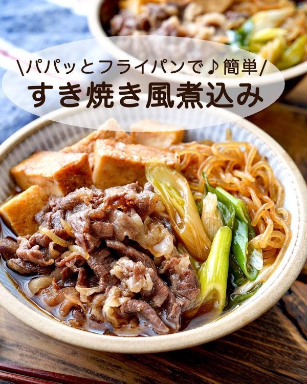 材料も調味料もシンプルに、フライパンでパパッと簡単にお作りいただけるすき焼き風です。