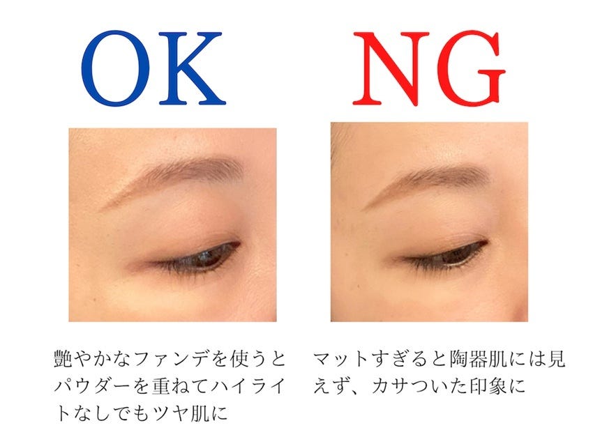 このほか、マットなファンデを使いたいなら、ハイライトで部分的にツヤを出して調整しましょう。