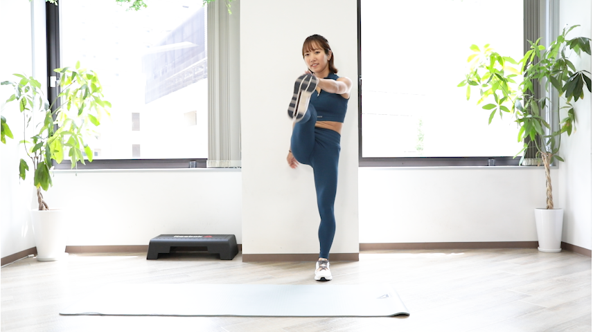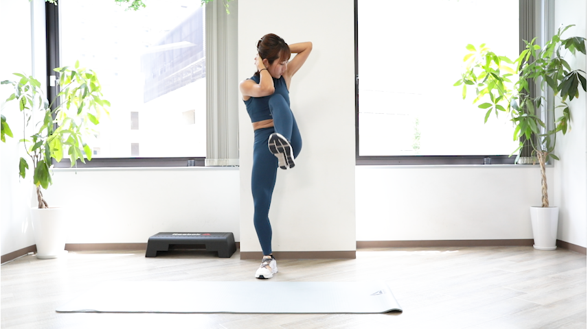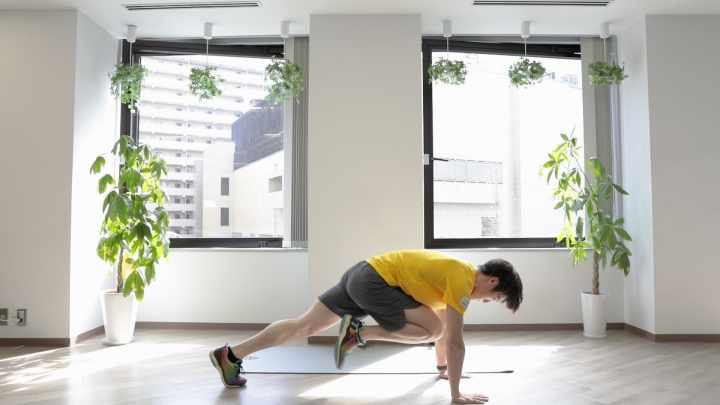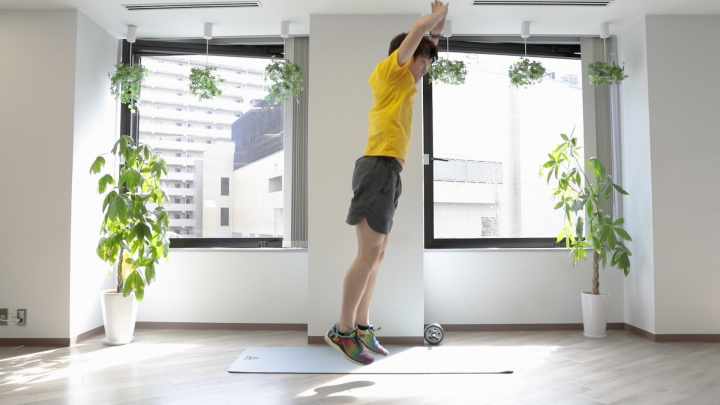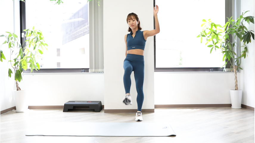 マンション住まいなどで、飛び跳ねる音が気になる方向けの種目です。丁寧なフォームで続けることで、脂肪燃焼効果を高めていきます。
