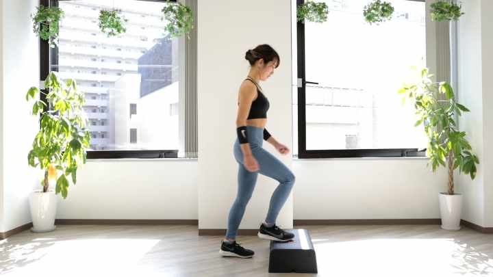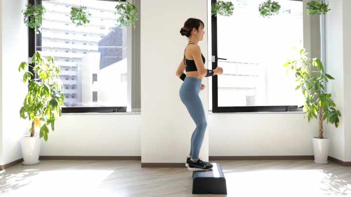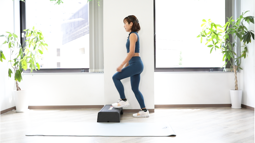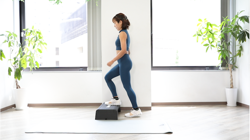 慣れてくると効果が薄くなってきますので、上り下りのリズムを速くしたり、台を高くしたりと、負荷を変えていくようにしましょう。