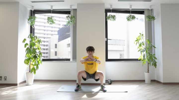 呼吸は止めず、最後までフォームが崩れないようにしましょう。