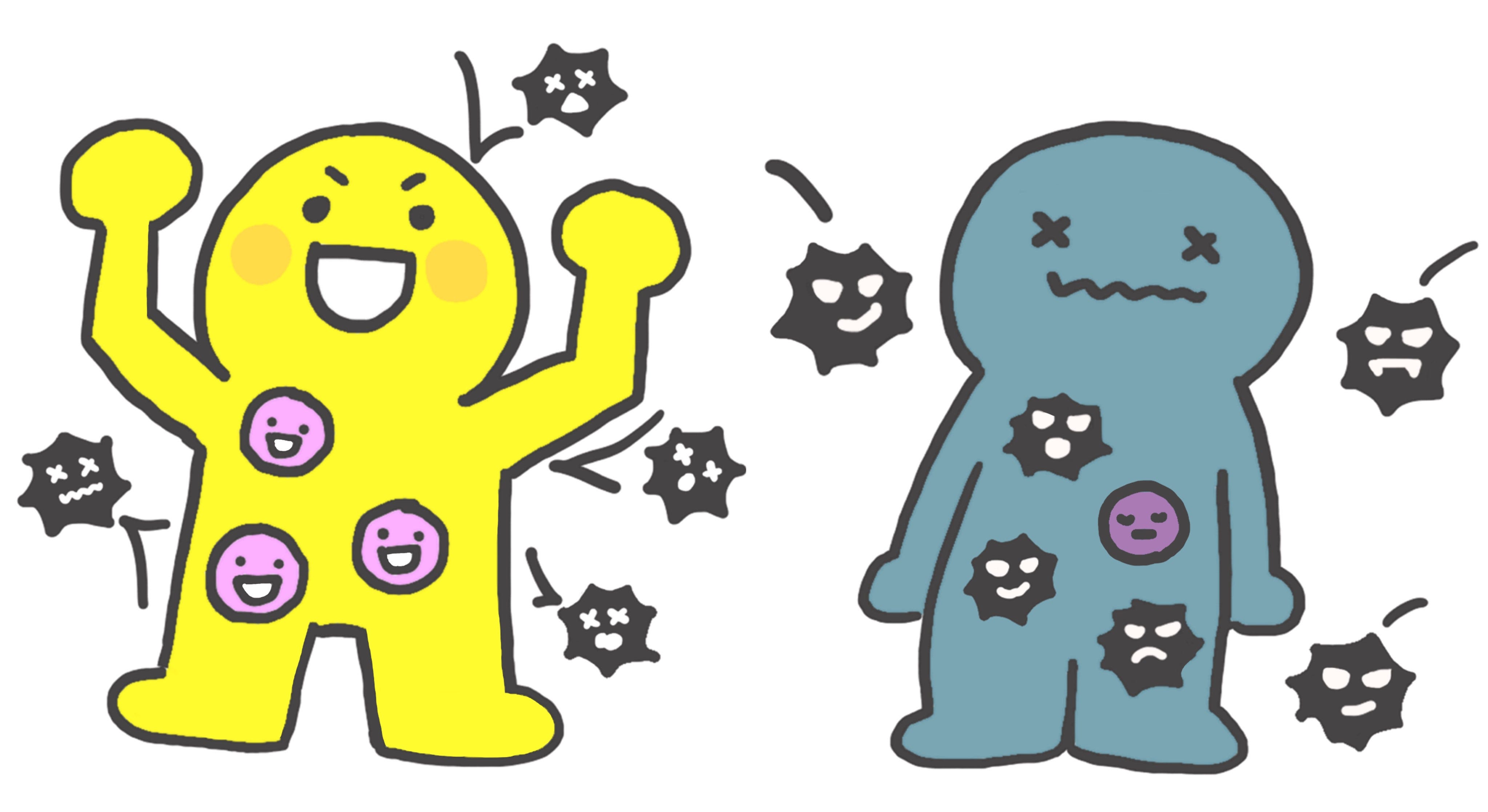 感染症やがんなど病気になるモト(異物)を見つけて殺傷し、排除するのが免疫細胞です。免疫細胞は、病原菌などから体を守るだけでなく、傷ついた細胞の修復や、新陳代謝を活発にすることにより体の機能低下や細胞の老化防止も行ってくれます。
