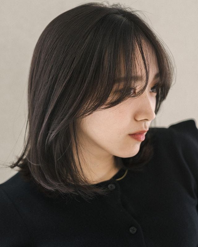 求心顔の女性がボブヘアにする場合は、前髪なしの韓国風ボブヘアスタイルも人気です。
