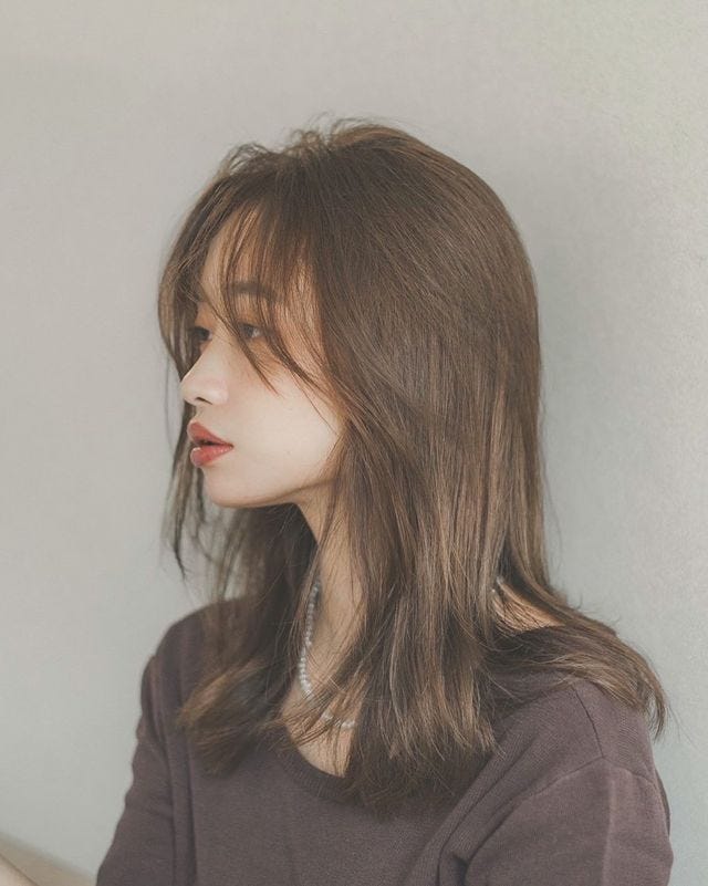 前髪を伸ばしたい求心顔の女性には、顔の余白を上手くカバーしたレイヤーミディの髪型がぴったりです。