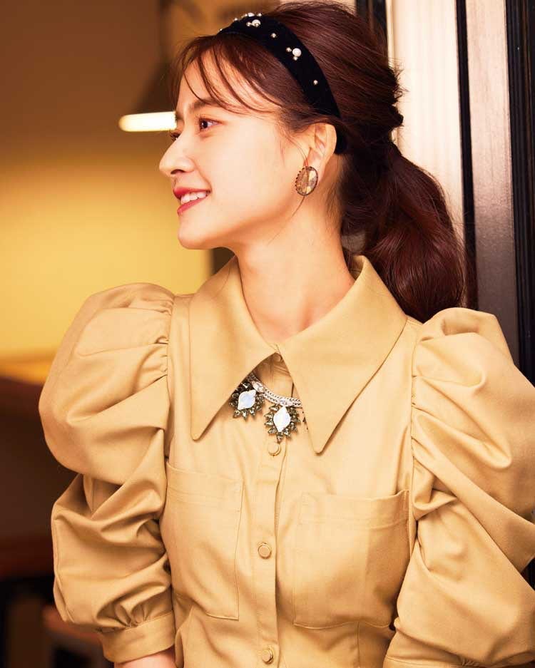 シャツ 7,480円/REDYAZEL ルミネエスト新宿店 ネックレス 13,500円、イヤリング 8,400円、リング 11,550円/以上アビステ カチューシャ 2,068円/flower