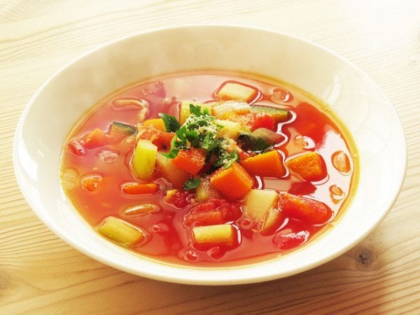 野菜本来の旨味をたっぷりと楽しめるイカフライの献立向けの汁物料理を知りたいのなら、おすすめはミネストローネです。
