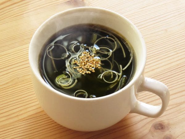 イカフライに合わせる汁物料理の中でも、特に簡単に作れるおすすめのレシピが、食物繊維たっぷりのワカメを使ったスープです。