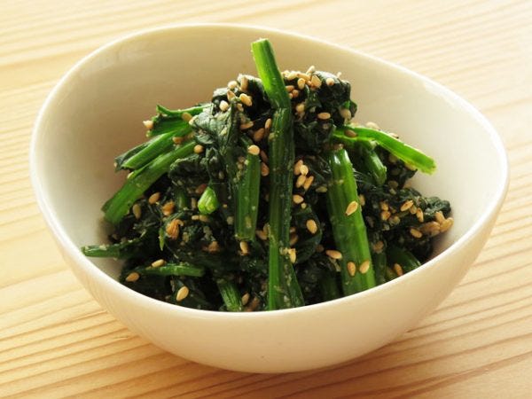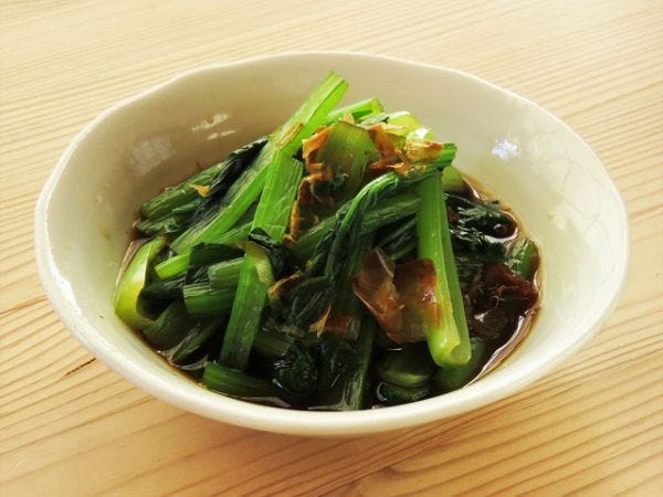 簡単にできるイカフライの献立に合わせる副菜レシピとして人気の、小松菜のおひたし。