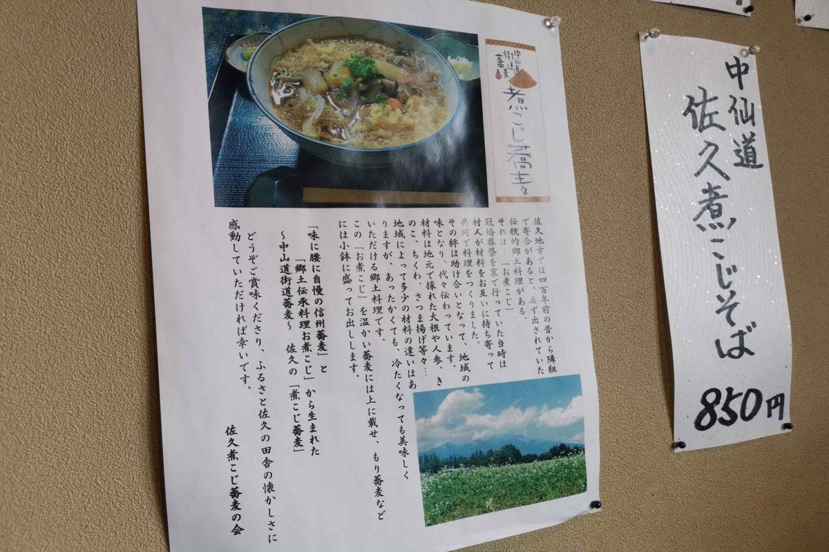 煮こじはかなり柔らかく煮られており、そばののど越しや食感を邪魔しないのもポイント。そばも煮こじも古くから佐久市で食べられていたものなので、相性がもともと良いのだろうか。