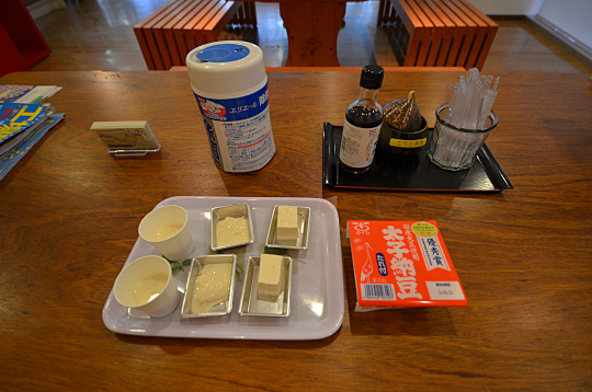 工場内には試食コーナーがあり、工場で出来立ての“お豆腐・ゆば・豆乳”を自由に試食できちゃいます。