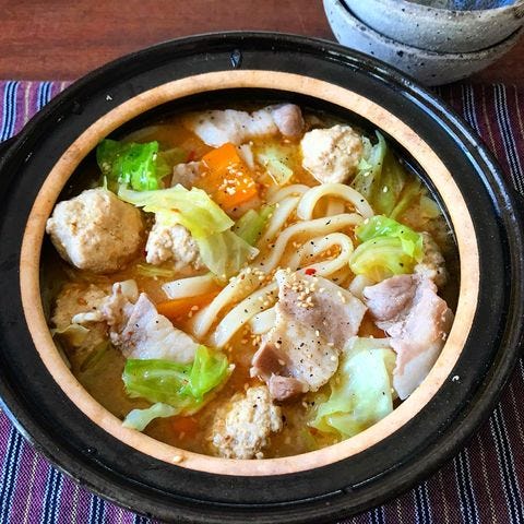 豚バラキャベツの旨辛鍋うどん