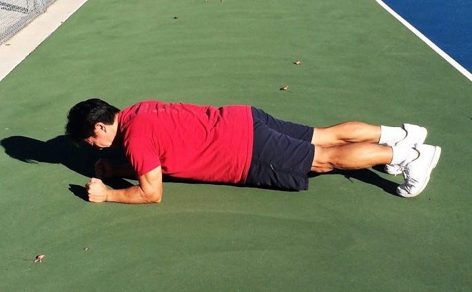 「プランク」を20秒間行い、10秒間休憩。これを8回繰り返します。ロープランク、ハイプランク、サイドプランクどれでもOKです。