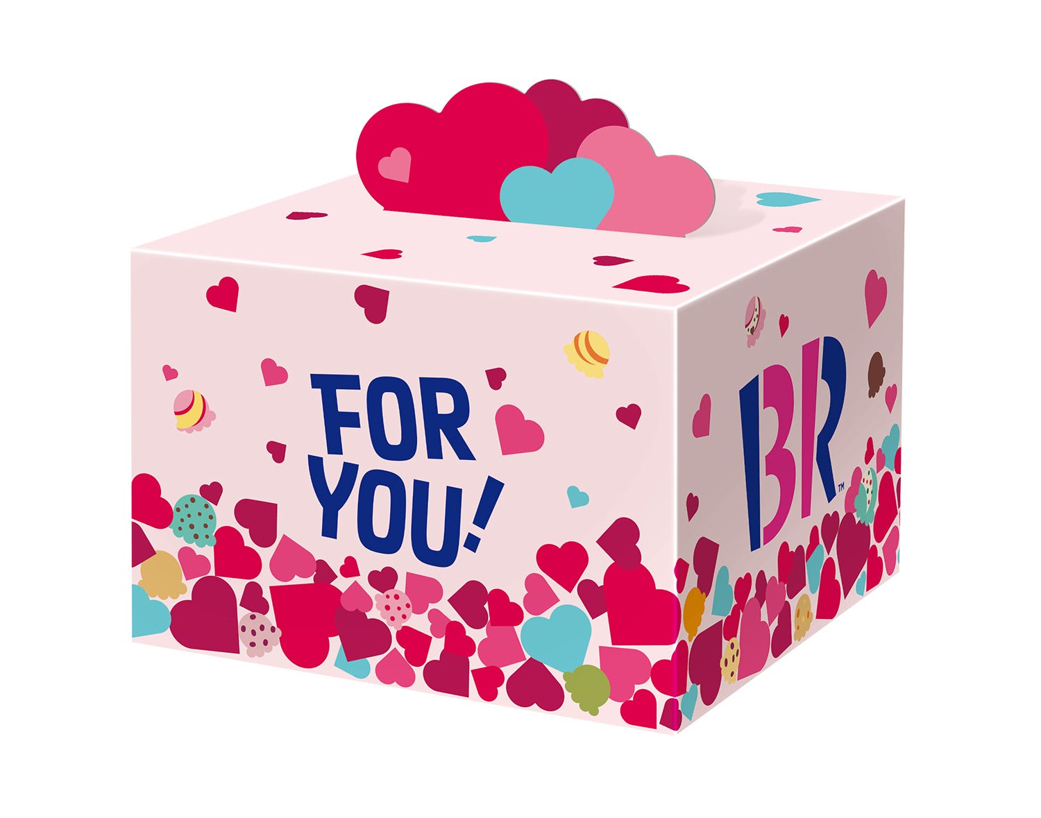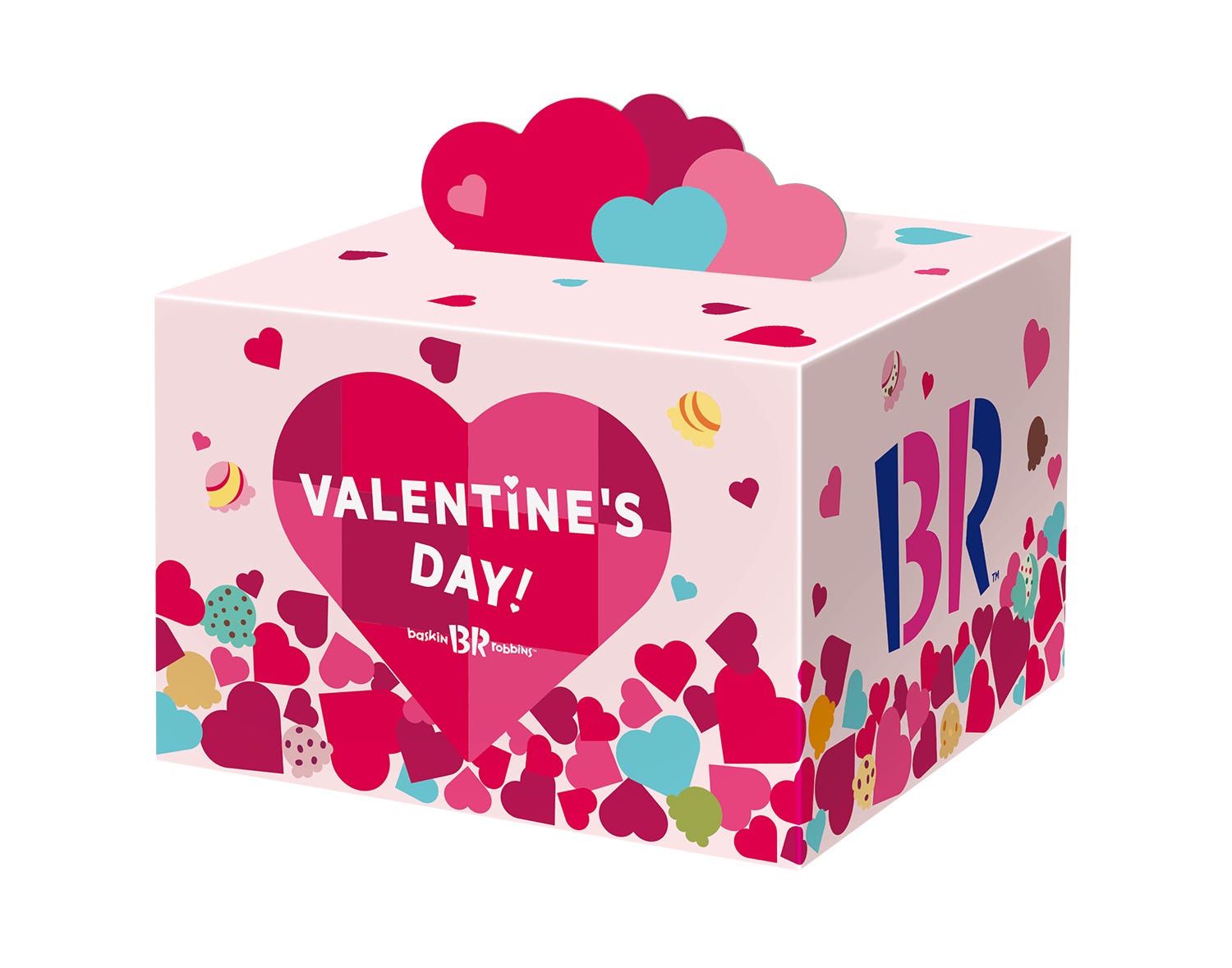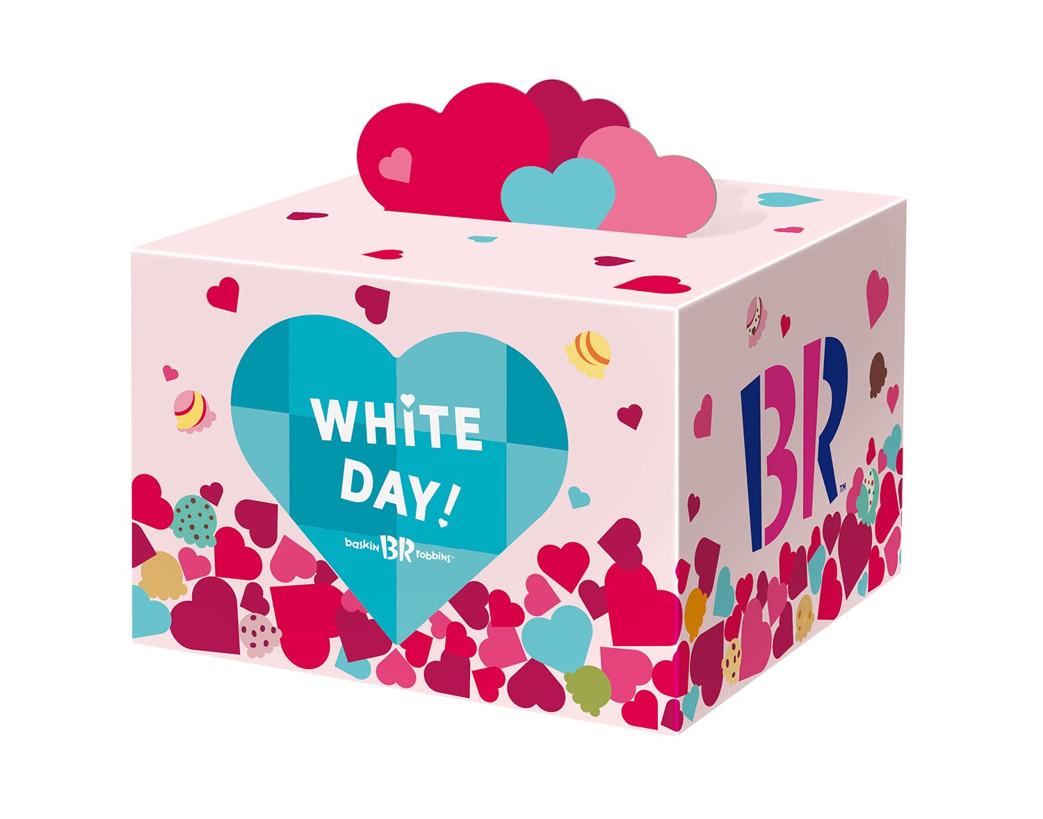 たくさんのハートが重なったデザインがかわいいテイクアウト専用商品も登場。期間限定デザインのボックスにお好きなアイスクリームを4個選んだら、あなただけのキュートなハートボックスが完成。