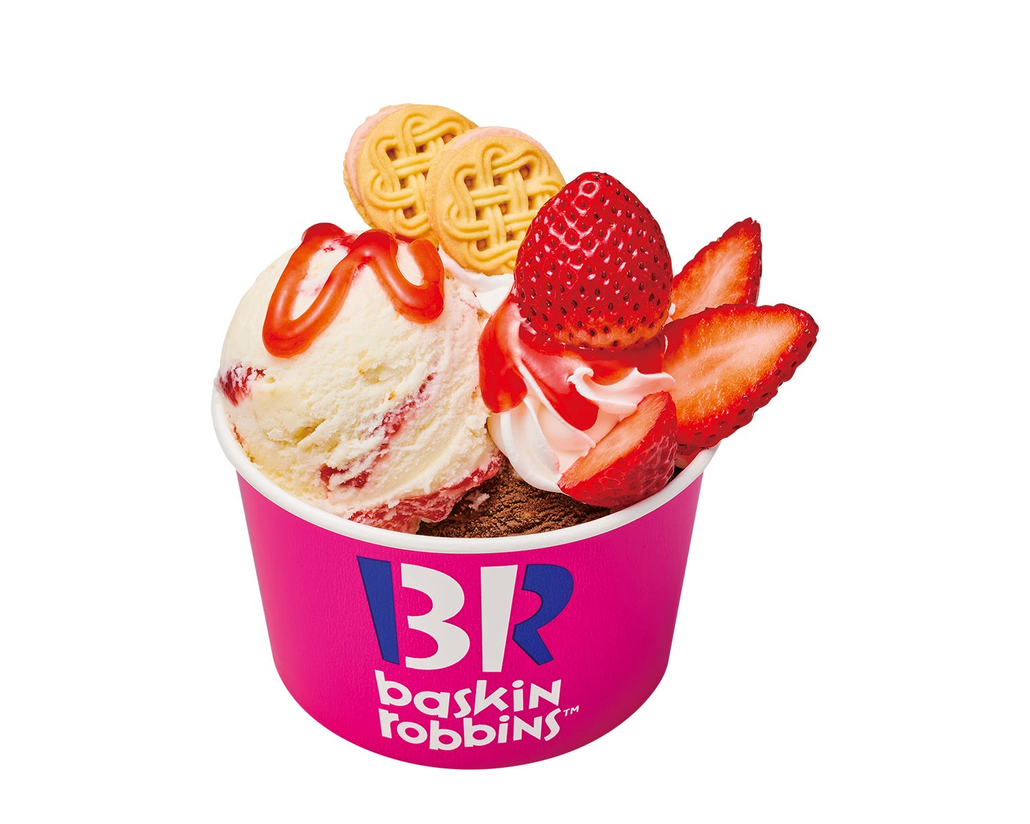 イチゴもチョコもどっちも楽しみたい!そんな方におすすめのスペシャルなサンデー。2粒分のイチゴに、チョコレートのトッピングを全部乗せ。限定デザインのカップでプレミアムなおいしさを楽しんで♪