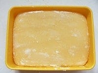 打ち粉少々を敷いたバットの上で形を整え、しばらく置いて切りやすいかたさにする。