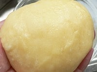 手に薄く片栗粉をつけて手で持ち、軽くこねてまとめる。