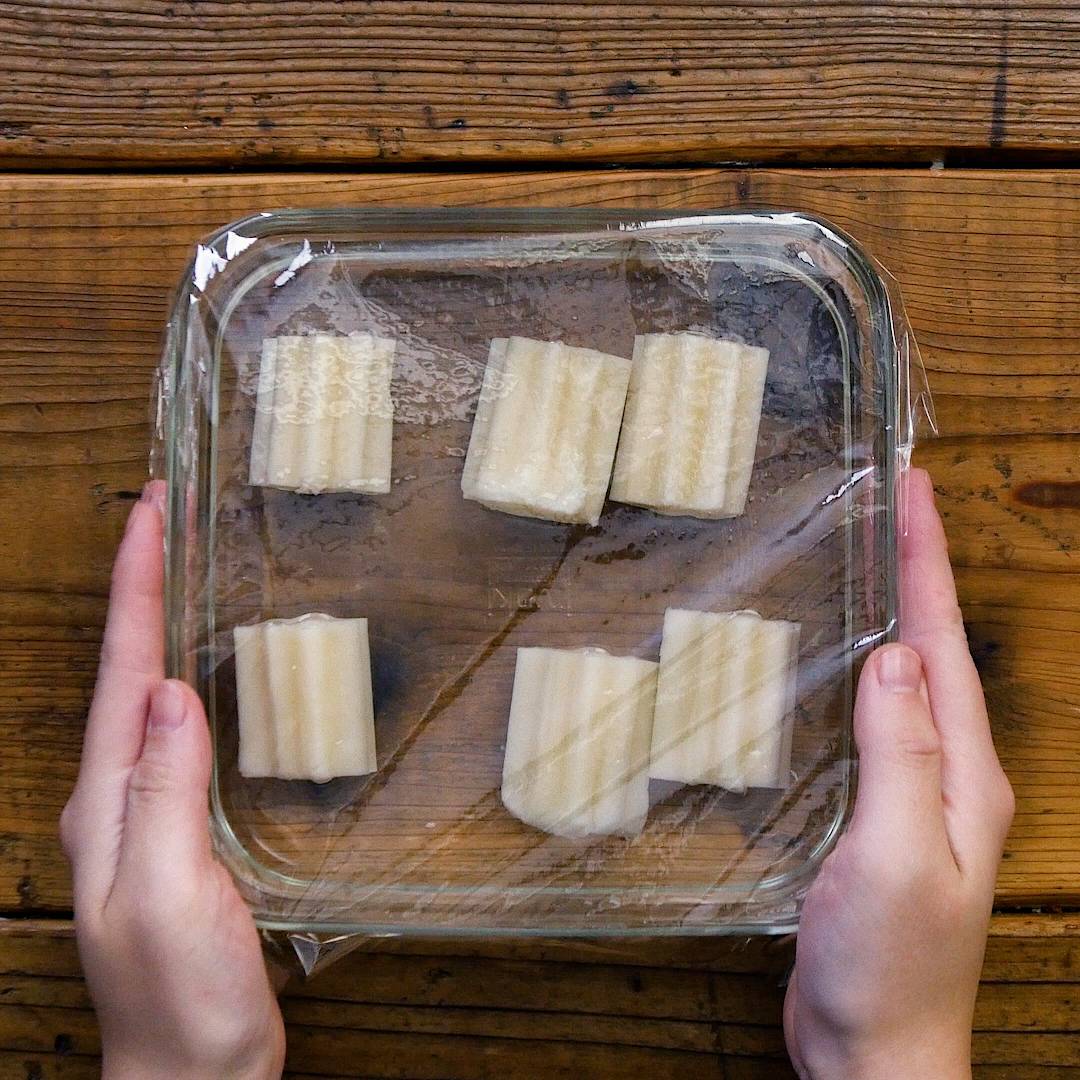 ちくわぶをクッキングシートの上にだして冷まします。