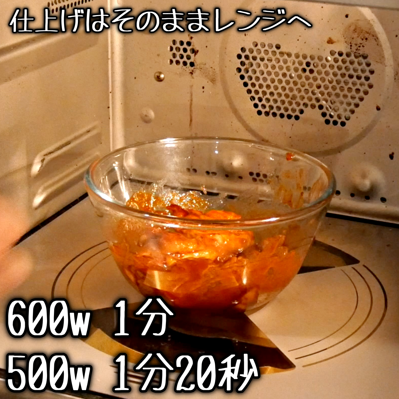 鶏もも肉が破裂してレンジ庫内が汚れる場合があります。クッキングシートをふわっと被せておくと安心です。