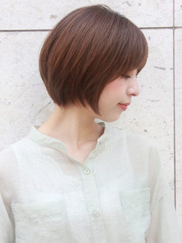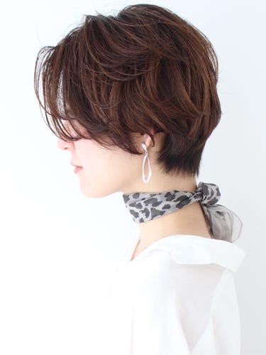 襟足をスッキリさせたショートヘアによく似合っていますね。40代の大人世代におすすめのヘアカラーです。