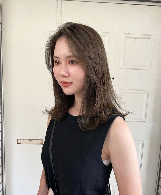 こちらは赤みを消したグレーよりの色味のオリーブになっています。ツヤ感と透明感が出る40代におすすめのヘアカラーです。