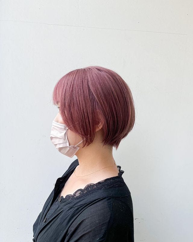 明るめのピンクベージュは、コンパクトなミニボブとの相性も抜群。温かみのある可愛らしい色味が、40代におすすめのヘアカラーといえるでしょう。