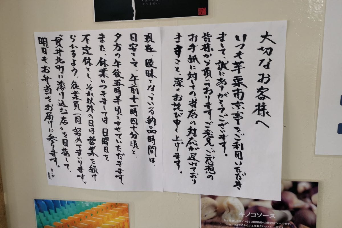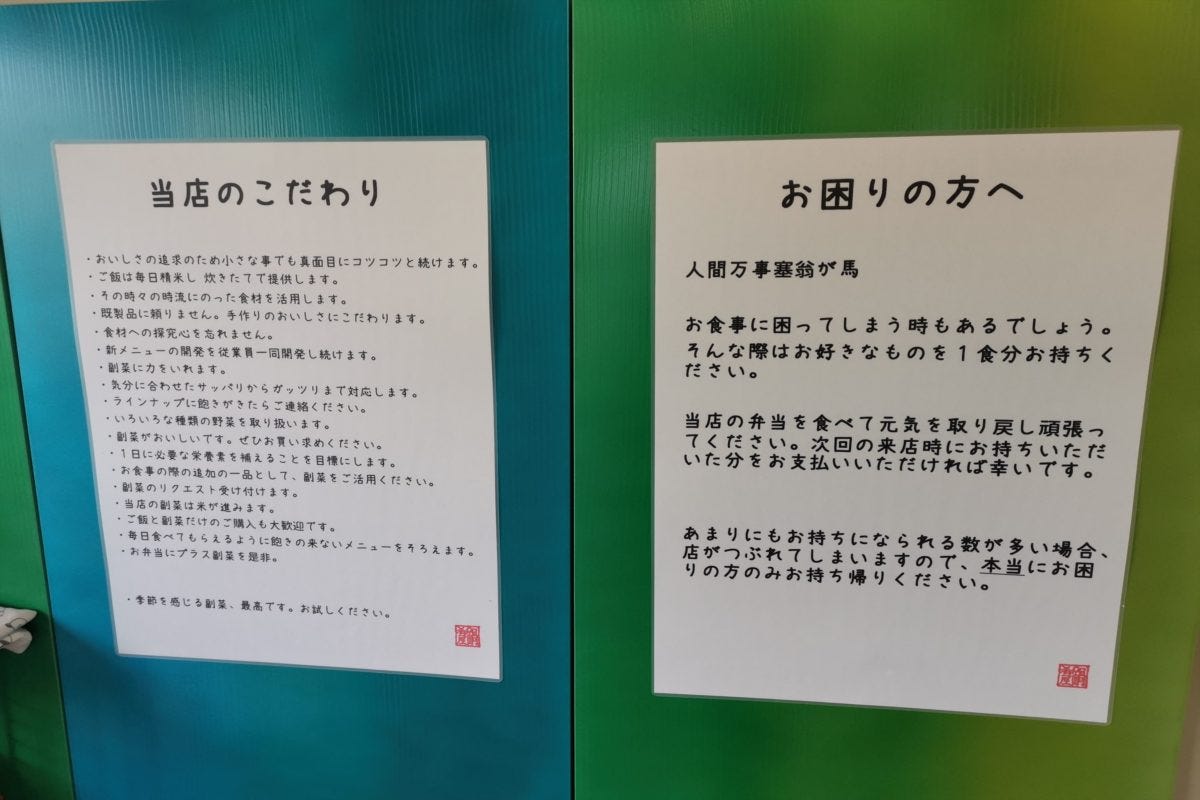 店内には美味しそうな弁当や総菜がたくさん並んでいるのだが、店に貼ってある張り紙があまりに優しすぎた。