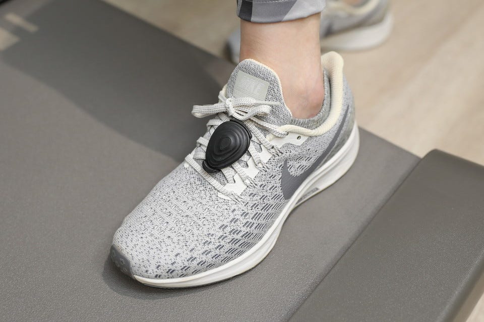 ストライドセンサーをシューズに装着して走ります。内蔵型シューズでもOKです。これで移動距離をROUVYに送信します。